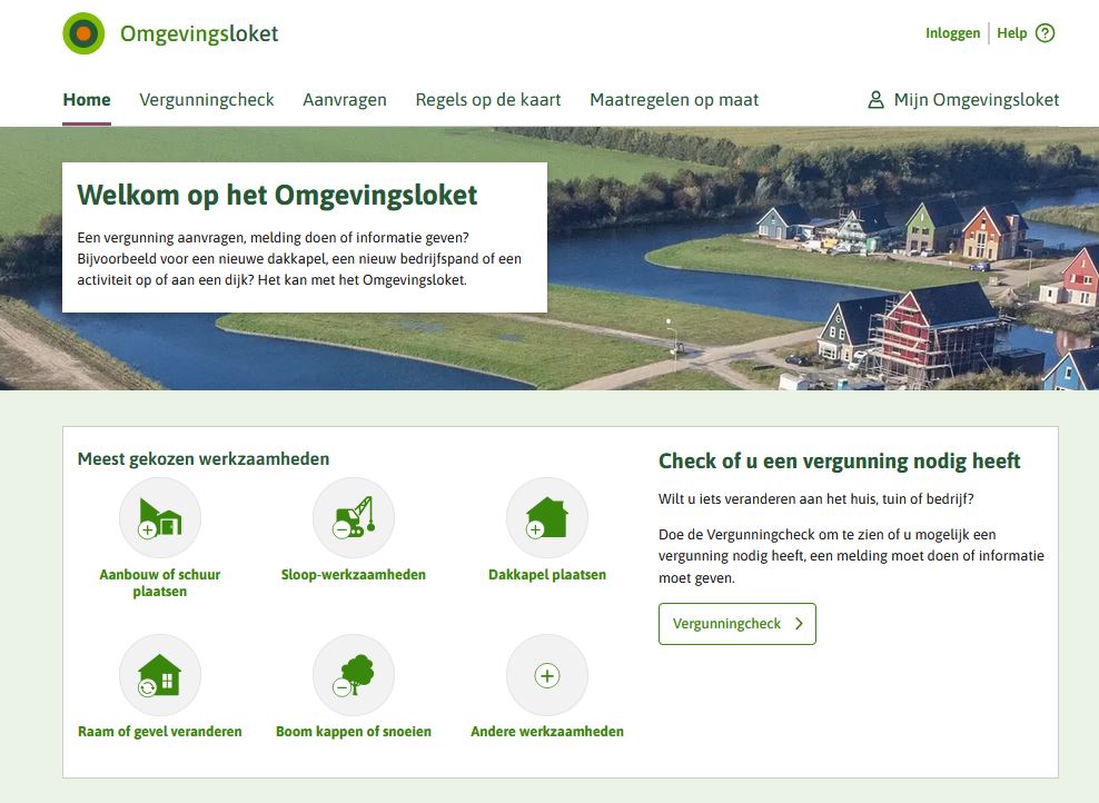 De bedoeling is dat alle regels, (Landelijk, Gemeentelijk, Provinciaal en van het Waterschap) in één centrale vergunningcheck terecht komen, via het landelijke Omgevingsloket. Voorlopig geeft de Vergunningscheck vaak geen duidelijke uitkomst maar wel een stappenplan of met wie contact moet worden opgenomen.